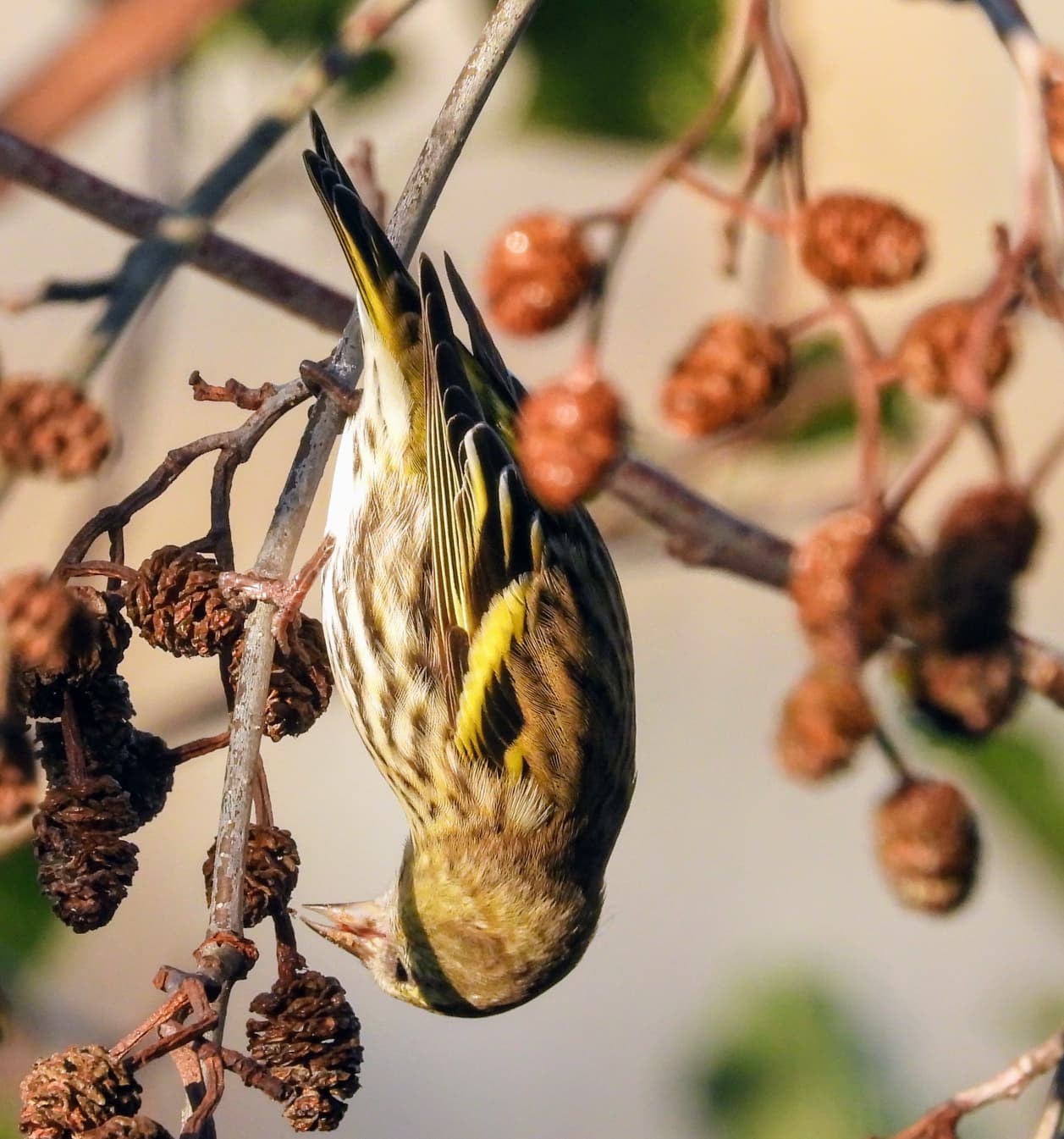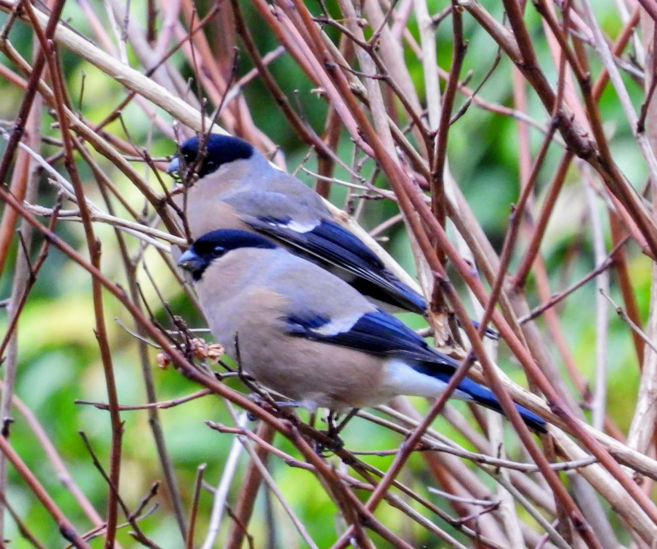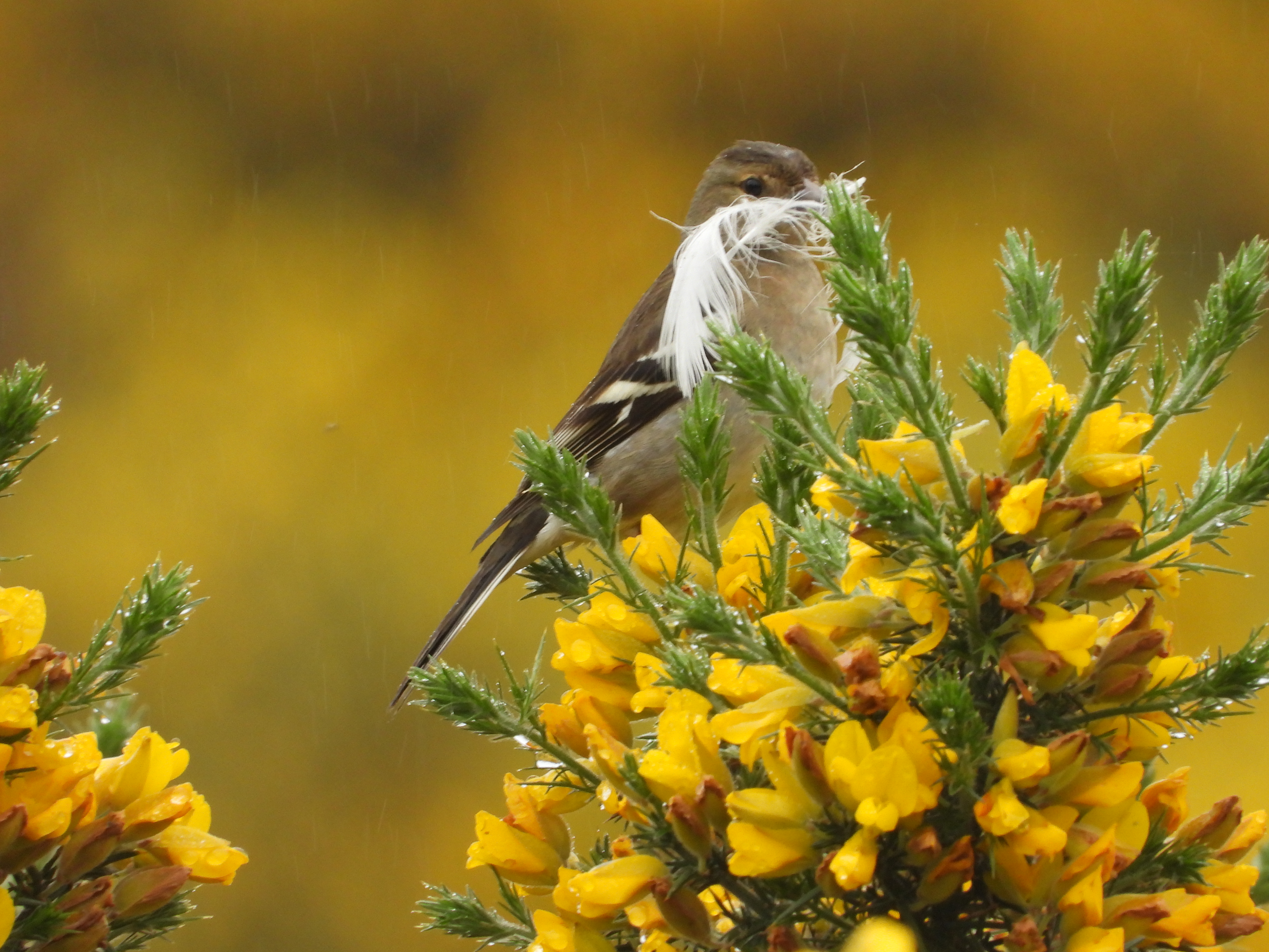 Hedges, gardens (picking up worms from a lawn), cotoneaster, buddleia and alder, gorse.